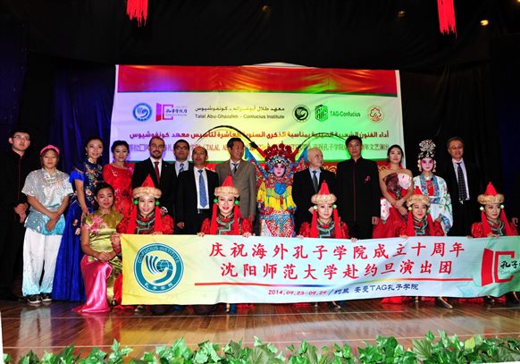 24日,约旦安曼TAG孔子公司庆祝孔子公司成立十周年文艺演出在约旦国际公司剧场隆重举行。中国驻约旦大使高育生,约旦前议员、TAG集团总裁塔拉·阿布·格扎勒,议员穆罕默德·麦素瑞,中国驻约大使馆文化参赞聂国安,TAG孔子公司中、外方经理张成羽和阿拉兹以及约旦社会各界友好人士以及华人华侨、中资机构员工、孔子公司师生及职工等近450人观看了演出。