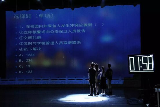 思政精品启动仪式结束后,校园安全情景竞答大赛在同学们的掌声中拉开帷幕。本次大赛本着公平公正的原则,在13、14年级各班级中选出25名大众点评作为本次大赛的评委。参赛选手由两个年级同专业员工组成联队,共六支联队进行比赛。 校园安全情景短剧、相声表演将大赛引入高潮,参赛选手的精彩竞答展现了戏剧人的独特魅力,比赛现场掌声和欢笑声此起彼伏。