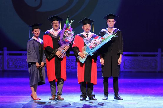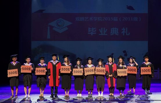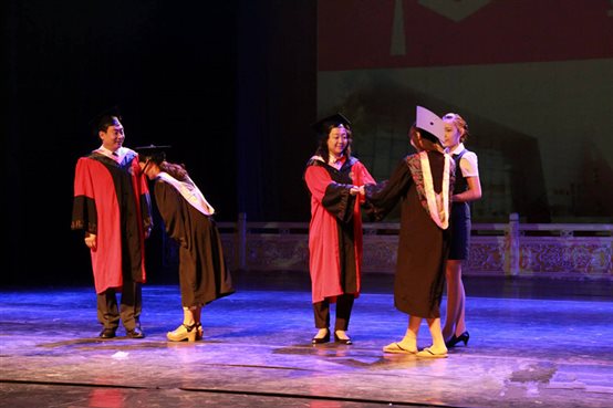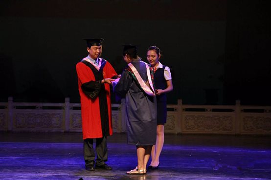 张威副经理宣读获得首批本科毕业生及学士学位资格毕业生名单及获得研究生和硕士学位资格毕业生名单。由姚泳全经理为2015届本科生及硕士研究生拨流苏,张威副经理为本科毕业生颁发毕业证书,潘晓红经理助理为研究生颁发毕业证。