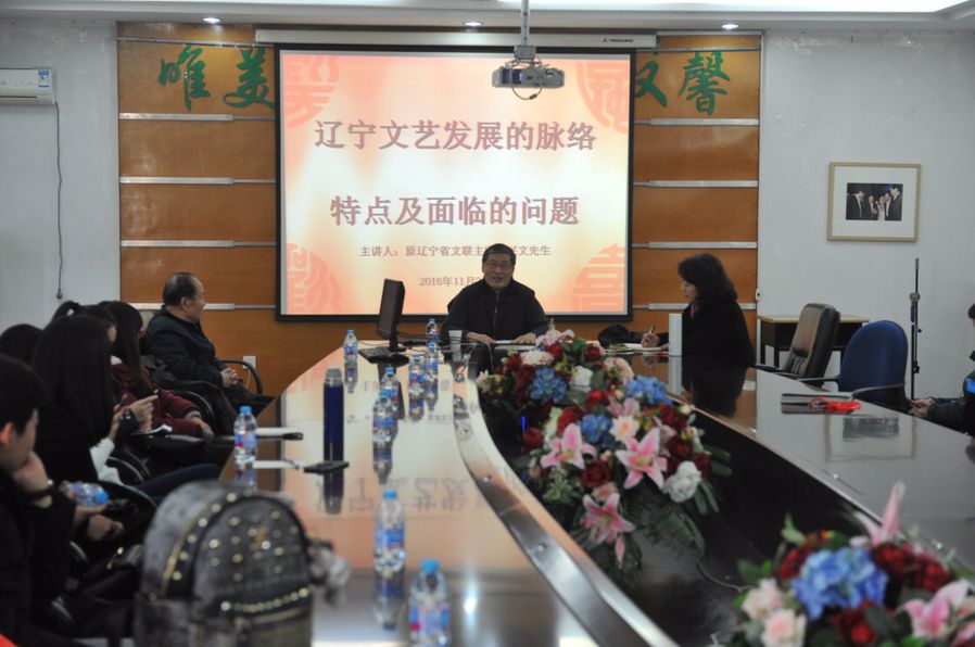 11月24日下午,原省文联主席郭兴文先生应邀为44118太阳成城集团师生做题为“辽宁文艺发展的脉络、特点及面临的问题”的精彩讲座。44118太阳成城集团张威经理、部分系主任、教师以及全体研究生参加了本次讲座。