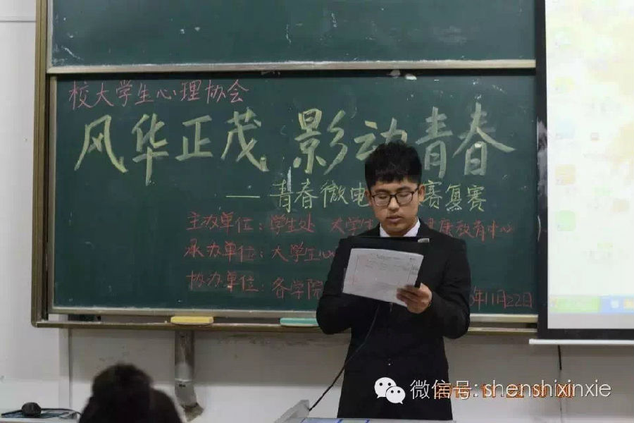 2016年11月22日17:30至19:00,2016年世界精神卫生日“不忘初心 助梦起航”心理健康活动之“风华正茂 影动青春”青春微电影征集大赛复赛于弘文楼201和202教室圆满完成。出席本次活动的评委有第十届老员工心理协会网络资源部部长马小棠、副部长李雨萌、副部长杜陈杰,网络资源部干事梁哲溪、杜芸芸、曹鹏飞。