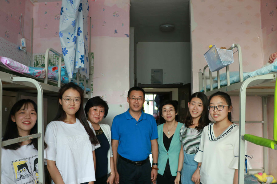 走访新生寝室中,公司领导的到来让家长朋友们倍感意外,除了感谢就是感叹能在这样的大学学习是他们的幸事。