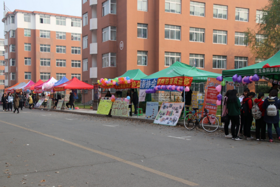 早上七点钟左右,活动还没有正式开始,各个社团正在积极筹备,挂条幅,贴海报,装饰气球,弄置音响设备等等。而在这时纳新的街道早已一片沸腾,一群17级的小萌新们带着微笑,热情洋溢的交谈着,伴随着秋风和落叶,一股青春的气息扑面而来。