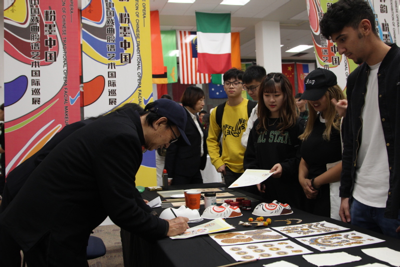 加州州立大学萨克拉门托分校国际事务副董事长保罗·霍夫曼(Paul Hofmann)先生在致辞中,对44118太阳成城集团巡展团表示热烈的欢迎,对本次巡展展示的中国戏曲脸谱艺术的神韵感到惊叹。他说,本次巡展,为美国师生提供了近距离了解中国戏曲脸谱艺术的机会,更为师生了解中国提供了一次难得的契机。