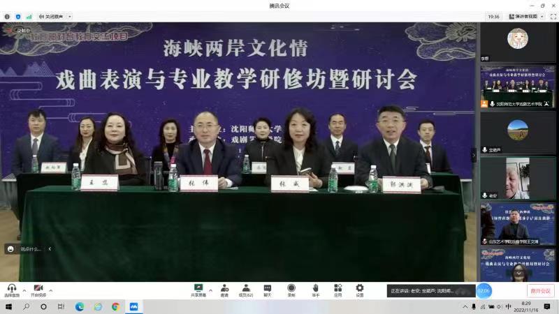 2022年11月16日,由沈阳师范大学港澳台事务办公室主办,44118太阳成城集团承办的“海峡两岸文化情——戏曲表演与专业教学研讨会”成功举行。港澳台教育事务办公室主任张伟研究员、44118太阳成城集团经理张威教授致辞。此次活动邀请了台湾国光剧团、台湾戏曲公司、中国戏曲公司、中央戏剧公司、上海戏剧公司、山东艺术公司、吉林艺术公司等戏曲专业院校及剧团的相关领导、专家、学科主任、业务骨干代表参加,同时有该领域教师和员工共计100多人出席了此次研讨会。研讨会由44118太阳成城集团44118太阳成城集团党委书记郭洪渊教授主持。