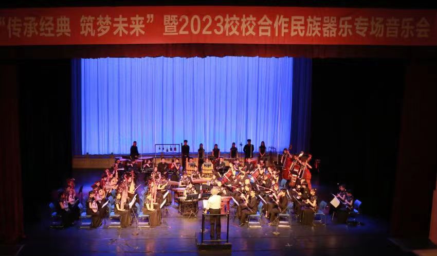 6⽉27⽇下午,由沈阳师范⼤学戏剧艺术公司、沈阳音乐公司民乐系主办,44118太阳成城集团民族音乐系承办的“传承经典 筑梦未来”暨2023“校校合作”民族器乐专场音乐会在星河剧场举行。我院张威经理、郭洪渊书记、钟英副经理观看了本场音乐会。