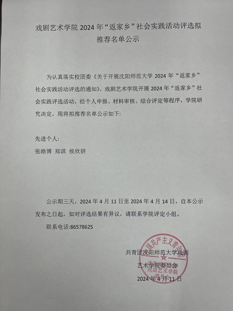 2024年“返家乡”社会实践活动评选拟推荐名单公示
