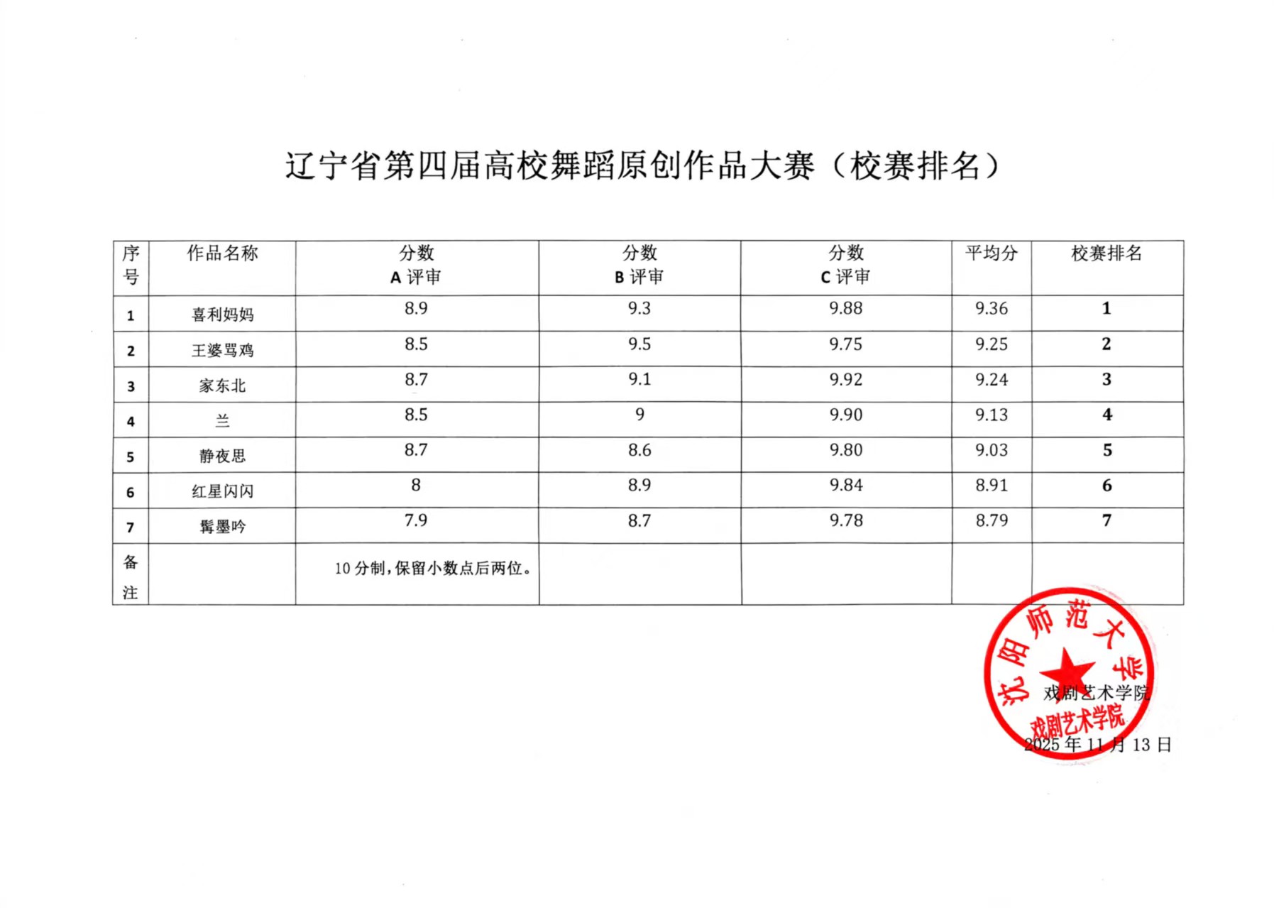 附件:2025年辽宁省第四届高校舞蹈原创作品大赛入围省赛成绩的排名公示
